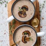 Keywords: healthy mushroom soup, creamy mushroom soup without cream, low fat mushroom soup, cottage cheese soup, bone broth soup, easy mushroom soup