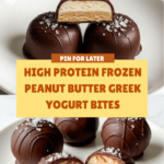 These High Protein Frozen Peanut Butter Greek Yogurt Bites are a perfect blend of creamy yogurt, rich peanut butter, and dark chocolate. Easy to make and ideal for a healthy snack, these bites are packed with protein and have a delicious sweet and salty flavor profile thanks to a sprinkle of flaky sea salt. They’re great for a quick energy boost or a guilt-free treat.
