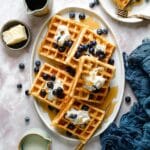 Keywords: buttermilk waffles, homemade waffles, Belgian waffles, breakfast recipe, cornmeal waffles