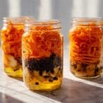 - Pour the brine: Carefully pour the hot brine over the carrots in each jar, making sure the carrots are completely submerged to promote proper pickling. Distribute spices evenly among jars for consistent taste.
