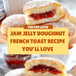 Jam Jelly Doughnut French Toast is best enjoyed fresh. If needed, store leftovers in an airtight container in the refrigerator for up to 1 day. Reheat gently in a toaster oven or skillet to maintain crispiness. Avoid microwaving to prevent sogginess.