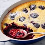 Julia Child’s Berry Clafoutis is a classic French dessert featuring juicy blackberries or blueberries baked in a delicate, custard-like batter. This easy-to-make clafoutis combines sweetened eggs, milk, and flour to create a light, puffed, and browned treat, perfect for breakfast, brunch, or a comforting dessert. A dusting of powdered sugar adds the perfect finishing touch to this warm, rustic dish.
