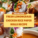 Lemongrass Chicken Rice Paper Rolls are fresh, flavorful, and perfect for a light meal or appetizer. These vibrant rolls combine tender marinated chicken with crisp vegetables and a delicious peanut dipping sauce for a taste of Southeast Asia at home.