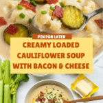 Keywords: cauliflower soup, loaded soup, creamy soup, bacon soup, comfort food, low carb soup, easy soup recipe