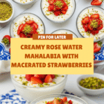 Keywords: Mahalabia, Rose Water Milk Pudding, Middle Eastern Dessert, Milk Pudding, Macerated Strawberries, Rosewater, Pistachios, Creamy Dessert