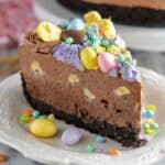 Keywords: Chocolate Cheesecake, Malted Easter Egg, Easter Dessert, Oreo Crust, Chocolate Whipped Cream, Springform Pan, Water Bath Baking