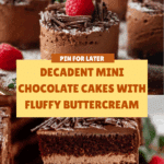 These mini chocolate cakes are rich, moist, and perfect for any chocolate lover. With a smooth chocolate buttercream and elegant decoration, they make a delightful treat for parties or a special dessert.