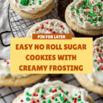 This No Roll Sugar Cookie recipe offers a simple and fuss-free way to enjoy classic sugar cookies with a soft texture and perfect sweetness. With a lightly crisp edge and tender center, these cookies are easy to make without the need for rolling out dough. Topped with a creamy, fluffy frosting, they make a delightful treat perfect for any occasion.