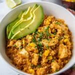 This One Pan Southwest Chicken Skillet is a flavorful and hearty meal combining tender chicken, aromatic spices, and vibrant vegetables all cooked together in a single skillet. Featuring a blend of chili powder, cumin, green chilies, and salsa, this dish captures the zesty essence of southwest cuisine. The recipe is simple to prepare, requiring just one pan and about 30 minutes, making it perfect for a quick weeknight dinner. Topped with melted cheddar cheese and customizable with your favorite toppings like sour cream and avocado, it’s a delicious and comforting meal for the whole family.