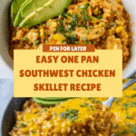 Keywords: southwest chicken skillet, one pan chicken recipe, easy chicken dinner, skillet chicken and rice, southwestern cuisine, quick chicken skillet