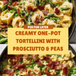 This One-Pot Tortellini with Prosciutto and Peas is a creamy, comforting Italian-inspired dish that combines tender cheese tortellini, crisp prosciutto, and sweet peas in a luscious sauce made with chicken broth, heavy cream, and a hint of lemon. The prosciutto adds a savory crunch while the lemon zest and juice brighten the rich flavors, making it a quick yet elegant meal perfect for weeknights or casual entertaining.