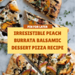 Keywords: Peach Burrata Dessert Pizza, caramelized peaches, balsamic glaze pizza, homemade pizza dough, dessert flatbread