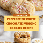Keywords: peppermint cookies, white chocolate pudding cookies, holiday cookies, soft cookies, chewy cookies, Christmas treats, festive dessert