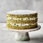 - Finish and serve: Just before serving, dust the top of the cake with confectioners’ sugar and sprinkle with any remaining reserved ground pistachios for an added nutty crunch and visual appeal.