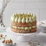 Keywords: Pistachio Dacquoise, French dessert, meringue cake, pistachio buttercream, elegant cake, nutty cake