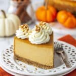 Keywords: pumpkin cheesecake, fall dessert, cream cheese pumpkin pie, water bath cheesecake, spiced cheesecake, holiday dessert