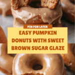 Keywords: pumpkin donuts, pumpkin spice donuts, baked donuts, fall recipes, brown sugar glaze, easy donut recipe