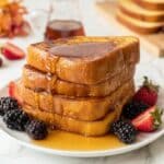 - Rewarm if Needed: If you cooked the French toast in batches, you can place all the cooked pieces back into the air fryer in a pile and heat for 1 minute to warm everything evenly before serving.