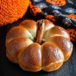 - Cool and decorate: Remove the string shaping the pumpkins carefully and insert a cinnamon stick on top of each bun to act as the pumpkin’s stalk. Allow the buns to cool completely before serving.