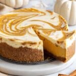 Keywords: Pumpkin Swirl Cheesecake, pumpkin cheesecake, fall dessert, autumn cheesecake, graham cracker crust cheesecake, spiced pumpkin dessert