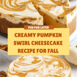 This Pumpkin Swirl Cheesecake is a rich and creamy dessert with the perfect blend of spiced pumpkin and classic cheesecake flavors. Its beautiful marbled pattern makes it an impressive centerpiece for any fall gathering or holiday celebration.