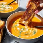 Keywords: pumpkin soup, tomato soup, grilled cheese sticks, fall recipes, comfort food, creamy soup, easy soup and sandwich