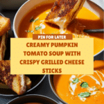 This Pumpkin Tomato Soup with Grilled Swiss Cheese Sticks is a comforting twist on classic flavors. The creamy, slightly spicy soup pairs perfectly with crispy, melty cheese rolls for a cozy meal any time of year.