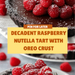 This Raspberry Nutella Tart combines a rich Oreo crumb crust with a luscious Nutella and chocolate ganache filling, topped with fresh raspberries dipped in a light sugar syrup for a perfect balance of sweet and tart flavors. It’s an indulgent yet elegant dessert that’s ideal for special occasions or anytime you crave a chocolate-hazelnut delight with a fresh fruity twist.