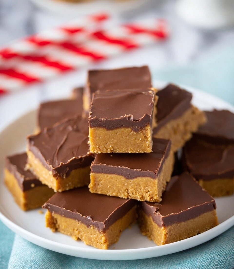 - Press the peanut butter layer firmly to ensure a solid base for the chocolate topping.