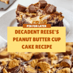 A decadent and rich Reese’s Peanut Butter Cup Cake that combines moist devil’s food cake with creamy peanut butter frosting swirled with chocolate syrup and topped with chopped peanut butter cups for an irresistible treat perfect for parties or a special dessert.