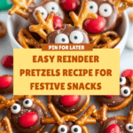 These adorable Reindeer Pretzels are a fun and festive treat perfect for the holiday season. Combining salty pretzels with melty chocolate and colorful candies, they make a delightful snack that’s both easy to make and sure to impress.