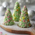 These Rice Krispie Christmas Trees are a fun and festive treat perfect for the holiday season. They combine the classic crunch of Rice Krispies with smooth, colored white chocolate to create edible decorations that are both delightful and delicious.