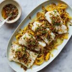 This roasted fish and leeks vinaigrette dish is a light yet flavorful meal that combines tender white fish with sweet, caramelized leeks. The tangy vinaigrette adds a fresh, vibrant finish, making it perfect for a simple weeknight dinner or a special occasion.