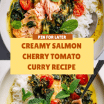 Keywords: salmon curry, cherry tomato curry, coconut milk curry, Indian-inspired seafood, healthy salmon recipe, quick curry recipe