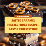 This Salted Caramel Pretzel Fudge is the perfect blend of sweet, salty, and crunchy. Rich chocolate fudge is layered with smooth caramel and crunchy pretzels, creating an irresistible treat ideal for sharing or savoring solo.