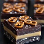Keywords: salted caramel fudge, pretzel fudge, chocolate fudge, easy fudge recipe, microwave fudge, holiday fudge, caramel pretzel dessert