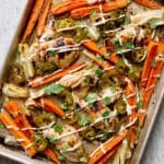 Keywords: sheet pan chicken, roasted carrots, yogurt marinade, cumin chicken, one pan dinner, healthy chicken recipe, easy chicken dinner