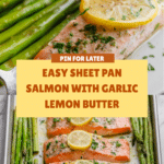 Keywords: sheet pan salmon, baked salmon, asparagus side, lemon garlic butter, healthy seafood dinner, easy sheet pan meal