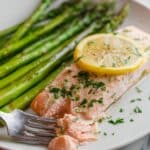 Keywords: sheet pan salmon, baked salmon, asparagus side, lemon garlic butter, healthy seafood dinner, easy sheet pan meal