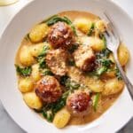 - Serve: Divide the gnocchi and meatballs among bowls and top with extra grated Parmesan to taste. Serve immediately and enjoy your comforting Tuscan-inspired meal.