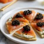 This Smoked Salmon Caviar Pizza is a decadent and elegant appetizer featuring a crispy mini naan base topped with creamy crème fraîche, luxurious smoked salmon, delicate caviar, fresh chives, and a sprinkle of black pepper. Perfect for special occasions or an indulgent snack, this recipe comes together quickly with simple yet high-quality ingredients.