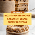Keywords: Snickerdoodle Cake, cinnamon swirl cake, cream cheese frosting, layered cake, dessert, classic cinnamon cake