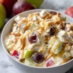 Snickers Salad is a creamy, fruity dessert salad combining crisp apples, chopped Snickers bars, instant vanilla pudding, and whipped topping, drizzled with caramel and chocolate syrup, and topped with crunchy peanuts. This easy-to-make, no-cook dish is perfect for potlucks and family gatherings.