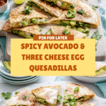 These spicy avocado, egg, and three cheese quesadillas are a flavorful twist on a classic favorite. Loaded with creamy avocado, melted cheese, and a perfectly cooked egg, they make a satisfying meal any time of day.