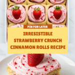 These Strawberry Crunch Cinnamon Rolls bring a fresh, fruity twist to a classic favorite. Soft, tender rolls are filled with a homemade strawberry filling and topped with a creamy strawberry-infused frosting that’s sure to delight your taste buds.