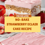 Keywords: Strawberry Eclair Cake, no-bake dessert, layered dessert, cheesecake pudding, graham cracker cake, strawberry dessert