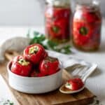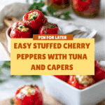 Stuffed cherry peppers make a delightful appetizer or snack with a savory tuna filling. These small, tangy peppers are bursting with flavor, combined with capers, anchovies, and parsley for a Mediterranean twist.