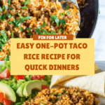 Keywords: taco rice, ground beef recipe, Tex-Mex dinner, one-pan meal, taco seasoning, easy dinner, skillet recipe, quick rice recipe