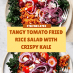 This Tomato Fried Rice Salad is a vibrant, flavorful dish combining massaged kale with a savory, tomato-infused fried rice base, topped with tangy red onions, olives, and crumbled feta. Perfect for a nutritious lunch or light dinner, it blends fresh greens and hearty rice with Mediterranean-inspired accents for a satisfying and healthy meal.