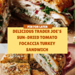 This Trader Joe’s Sun-Dried Tomato Focaccia Turkey Sandwich is a flavorful and easy lunch option that combines savory deli turkey with fresh veggies and a vibrant pesto mayo. The sun-dried tomato focaccia adds a deliciously chewy and aromatic base perfect for layering your favorite sandwich ingredients.